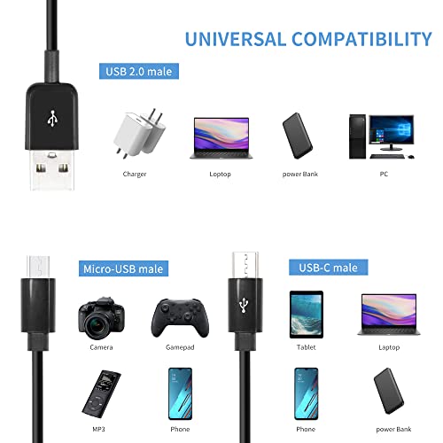 Cavo splitter USB Y: cavo splitter USB 2.0 A maschio a micro USB maschio e tipo C maschio. Questo splitter USB Y è adatto per la maggior parte dei dispositivi di tipo C e micro USB come telefoni cellulari, tablet o power bank, ecc. Plug and play, facile da usare.