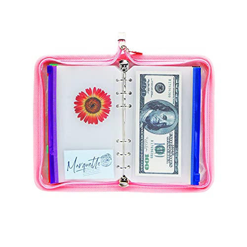 RIIEYOCA Raccoglitore ad 6 Anelli,10 Buste con Cerniera, Trasparenti Raccoglitore A6, con Copertina in PVC Impermeabile, Adatto per l'home Office e la Scuola