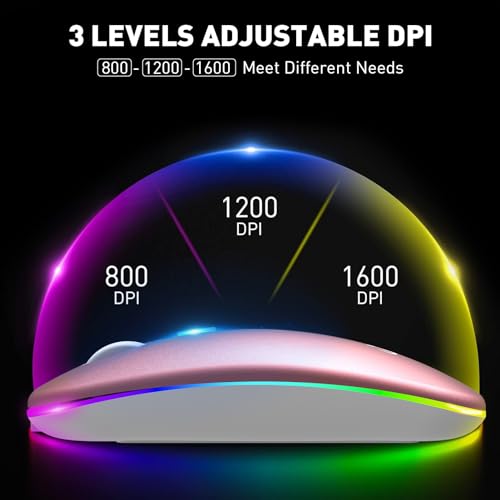 RIIKUNTEK Mouse Wireless Ricaricabile, Mouse Wireless Silenzioso, Mouse Wireless Sottile con 1600 DPI, Mause Senza Filo con Ricevitore USB, Mouse Wireless LED, Mouse Wireless per Laptop PC Mac, Rosa
