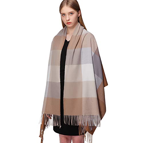 RIIQIICHY Sciarpa a quadri per donna Sciarpe e scialli di pashmina invernali spessi caldi marrone