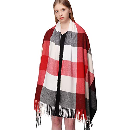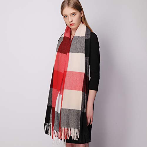 RIIQIICHY Sciarpa a quadri per donna Sciarpe e scialli di pashmina invernali spessi caldi rosso