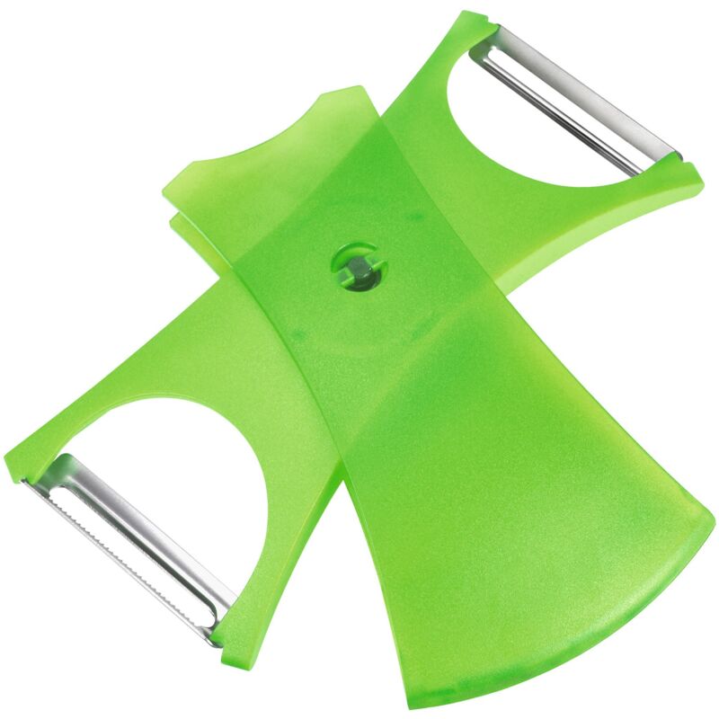 Due pelapatate in uno. Girando la presa è possibile scegliere tra due lame: o la lama fine Piranha per frutta e verdura morbida come kiwi o pomodori, o il pelapatate per patate, carote, ecc. Niente è più facile. Dettagli:, Lama dritta per la pelatura normale, Lama seghettata per frutta e verdura morbida, Girate a scelta le lame Lunghezza: 13,5 cm Materiale: plastica ABS, acciaio inox Colore: verde Numero articolo del produttore: 22237, Volume di consegna:1 Kuhn Rikon Design Line Pelapatate 2-in-1, Pelapatate Piranha 2 in 1, Acciaio Inox, Verde, 13,5 cm, 22237