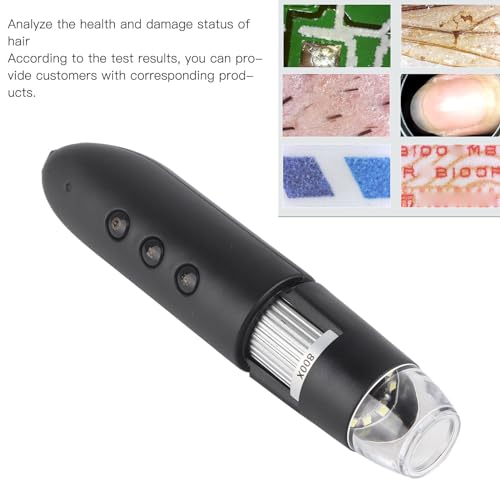 Mostra chiaramente: il rilevatore di peli sulla pelle al microscopio con ingrandimento 800X per aiutarti a osservare chiaramente le condizioni del cuoio capelluto, ti consente di vedere le condizioni di ostruzione dei pori, capelli grassi e secchi, crescita dei capelli, caduta dei capelli, capelli bianchi, condizioni danneggiate e altre condizioni dei capelli della testa.