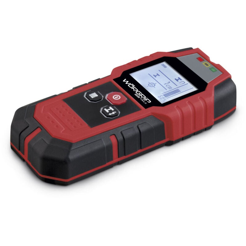 Rilevatore digitale WORGRIP ad alta precisione. Indicato per l'utilizzo su pareti, soffitti e pavimenti: evitando così di forare tubi e tubazioni. Rilevamento di materiali metallici in massima profondità di 80 mm e non metallici in 60 mm. Rilevamento di cavi in rame ed elettrici in una profondità massima di 50 mm. Rilevamento di legno fino a 20 mm di profondità . Indicatore LED tricolore (sistema a semaforo), per interpretare facilmente il risultato. Segnale acustico di avviso quando il sensore rileva qualsiasi materiale. Ergonomico custodia antivibrante e antiscivolo con tecnologia Softgrip. Funziona con batteria da 9V (LR61), non inclusa. Autonomia di 6 ore. Peso totale di 120 grammi.