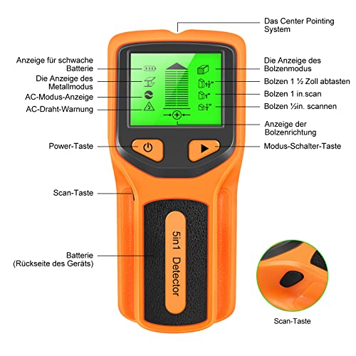 Rilevatore di Metallo e Cavi Elettrici, Scanner da Parete 5 in 1 con display LCD HD, per Metallo,Tubi, Legno,Linea Elettrica,Rilevatore di Corrente Alternata