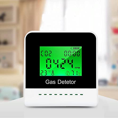 Rilevatore di CO2 Misuratore di anidride carbonica 400-5000 PPM, CO2 per interni Meter Monitor CO2 di qualità dell'aria con allarme acustico, temperatura, umidità, alimentato a batteria