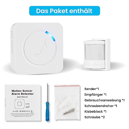 Rilevatore di Movimento Infrarossi per esterni, PHYSEN Sensore Movimento Allarme Casa Senza Fili, Kit elettronico per campanello senza fili, Antifurto Wireless per Alberghi/Cortile/Fabbriche