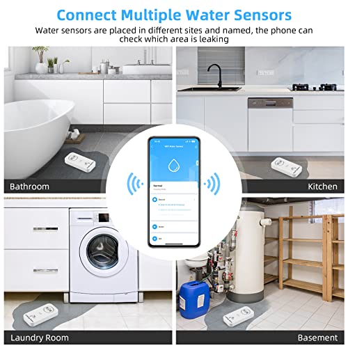 Ampiamente Usato: il rilevatore di perdite d'acqua è ideale per tubi, bagni, cucine, camere da letto, cantine, lavanderie, pompe per acque reflue nelle vicinanze e qualsiasi altro luogo soggetto a perdite. Assegna un nome a ciascun sensore d'acqua e alla sua posizione utilizzando l'app.
