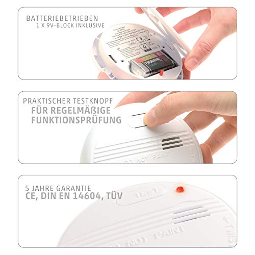 RILEVATORE DI FUMO Sicuro 2 x de 4smile ǀ Allarme antincendio con batteria de 9V ǀ Segnalatore di incendio con certificato CE / EN14604 / TÜV ǀ ottico fotoeléctrico ǀ potenza sonora di 85 dB ǀ garanzia 5 anni