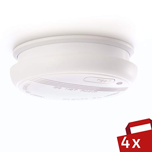 RILEVATORE DI FUMO Sicuro 4 x de 4smile ǀ Allarme antincendio con batteria de 9V ǀ Segnalatore di incendio con certificato CE / EN14604 / TÜV ǀ ottico fotoeléctrico ǀ potenza sonora di 85 dB ǀ garanzia 5 anni
