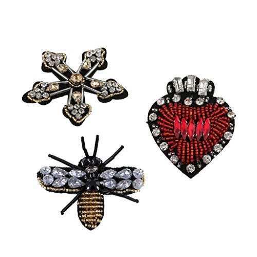 3pcs A Mano In Rilievo Con Paillette Di Cristallo Cuore Ape Stelle Design Patch Distintivo Applique Borse Abbigliamento Decorato Accessori Per Il Cucito