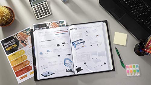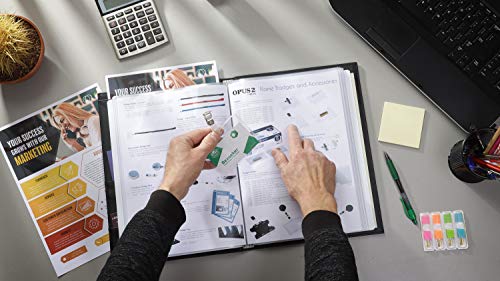 Risparmia peso e spazio rispetto ad altri sistemi di presentazione e raccoglitori ad anelli. Permette di stampare tra le pagine come in un libro