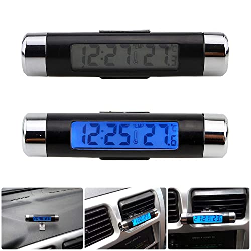 Riloer - Orologio universale per cruscotto auto, con luce nera e schermo LCD, regolabile, con indicatore di temperatura del veicolo, supporto 12 ore/24 ore di trasformazione