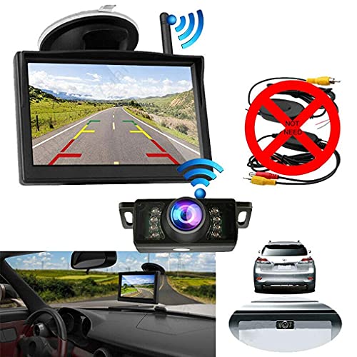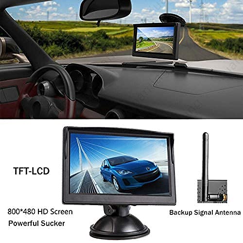Riloer Kit di retrovisione per auto wireless 170 °, telecamera di retromarcia HD per visione notturna, monitor LCD da 5 "