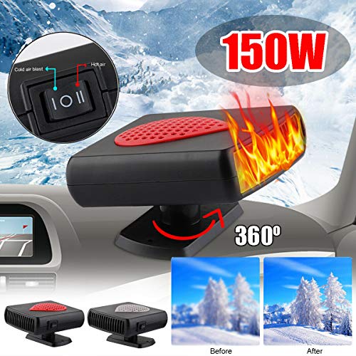 Riloer Riscaldatore per auto portatile 2 in 1, sbrinatore per auto, ventola di raffreddamento per auto calda e fredda sbrinatore per parabrezza con presa accendisigari 24V
