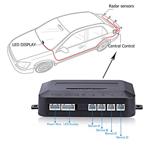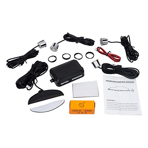 Riloer Sensore radar di parcheggio posteriore per auto, 4 sensori argento, avvisatore acustico a LED