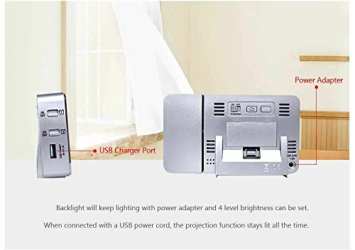 ★ La luminosità a 4 livelli dell'orologio del proiettore fornisce il miglior effetto visivo (Nota: il proiettore visualizza alternativamente la temperatura interna ed esterna ogni 5 secondi).