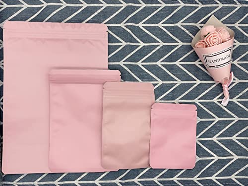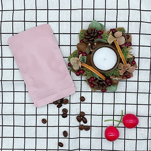 Rimiko 50 Pezzi Sacchetti di Alluminio Opaco Prova di Odore, Piccola Sacchetti del Campione Richiudibili con Zip, Borsa in Mylar a Chiusura Ermetica per Alimenti e l'Imballaggio (Rosa, 10,5x15cm)