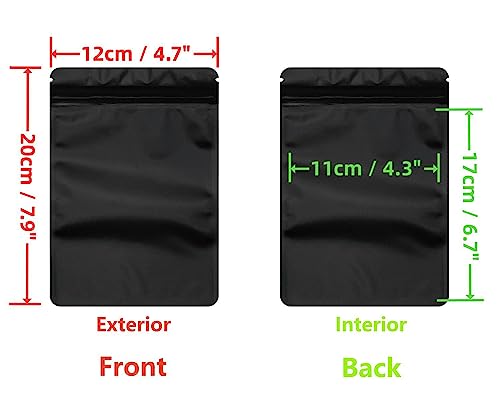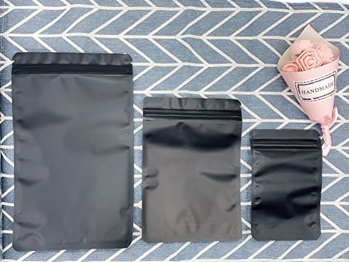 Rimiko 50 Pezzi Sacchetti di Alluminio Opaco Prova di Odore, Piccola Sacchetti del Campione Richiudibili con Zip, Borsa in Mylar a Chiusura Ermetica per Alimenti e l'Imballaggio (Nero,12x20cm)