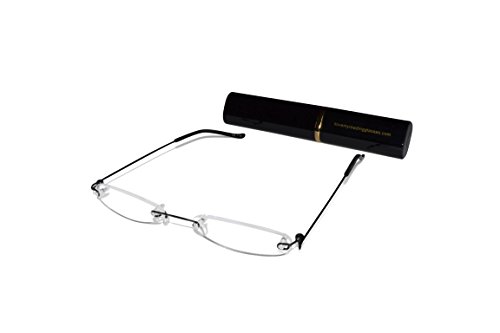 Rimless occhiali da lettura unisex +2.0 Ultra sottili e leggeri. In offerta con custodia rigida da ilovemyreadingglasses (Nero)