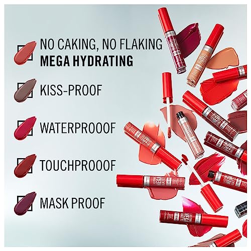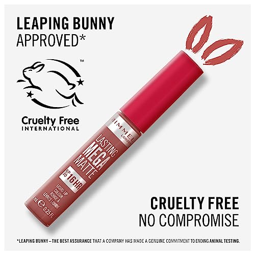 Rimmel London Rossetto Liquido Lasting Mega Matte, Rossetto Liquido a Lunga Durata per Labbra Morbide con Finish Mega Matte, Formula Vegana con Squalane e Olio di Cocco - 110 Blush, 7.4ml