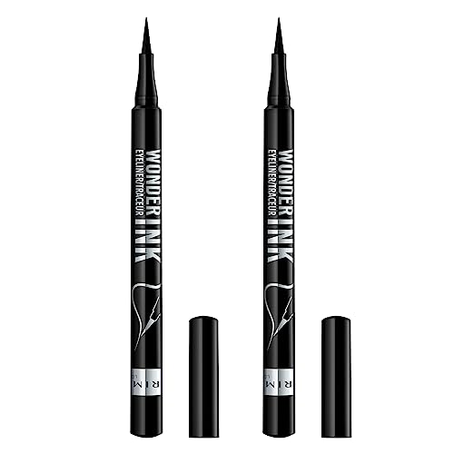 Rimmel London Wonder Ink Eyeliner Pen con Punta in Feltro Ultra Sottile per Tratti Precisi Formula Waterproof No-Transfer Super Pigmentata a Lunga Tenuta Colore Intenso 001 Black - 2 Cosmetici