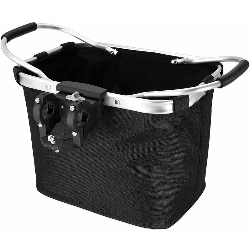 Tessuto Oxford resistente all'acqua con telaio in alluminio, solido e resistente. La tasca interna con cerniera mantiene i tuoi oggetti di valore al sicuro. Il fondo piatto con quattro pad crea un supporto stabile. Due maniglie in alluminio con tampone di spugna, da trasportare. piega compatto per una facile conservazione in auto o lo zaino. Può essere utilizzato come shopping bag, sacchetto di trasporto dell'animale domestico dopo essere stato distaccato dal manubrio. • • rimovibile pieghevole bici cestino cestello manubrio cestino bicicletta pet sacchetto portante sacchetto di alluminio telaio in alluminio maniglie più alto cestino cestino anteriore bici nero-nero