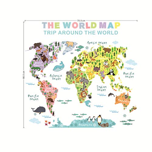 1 pz rimovibile rispettoso dellambiente autoadesivo bambini educativi mondo animale mappa adesivi murali carta da parati decalcomania della parete della decorazione della parete