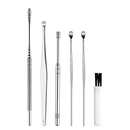 6PCS Kit di rimozione cerume per orecchio Picker per rimozione cerume per orecchio Acciaio inossidabile Earpick Pick per l'orecchio Detergente per l'orecchio Cucchiaio Strumenti per la
