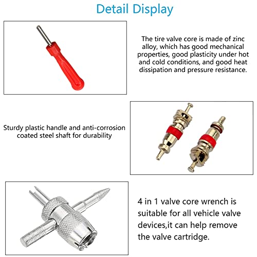 MATERIALE DI ALTA QUALITÀ: manico in plastica robusta e stelo in acciaio con rivestimento resistente alla corrosione. Il nucleo della valvola per pneumatici è realizzato in lega di zinco e ha buone proprietà meccaniche, è in plastica sia in condizioni calde che fredde e ha una buona dissipazione del calore e resistenza alla pressione.
