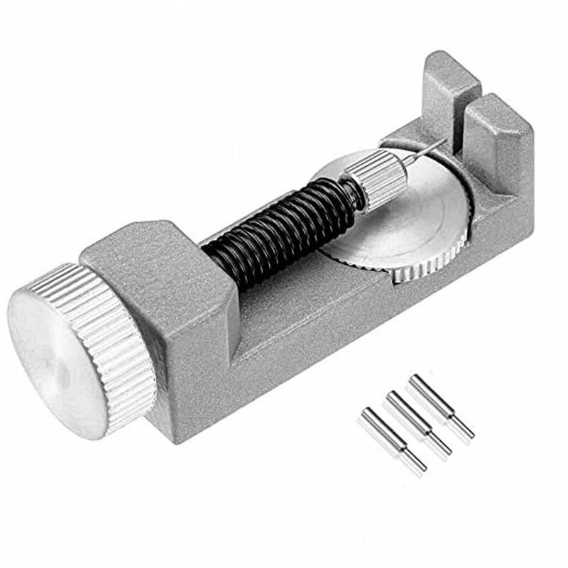 Colore come mostrato Dimensioni: 5*5*5 cm Peso: 30 g Resistente: robusto anello di rimozione del cinturino interamente in metallo. > Facile da usare: regola da solo il cinturino dell'orologio con questo piccolo strumento in modo efficiente senza dimenarsi. Compatibile con diverse dimensioni: Quattro perni aggiuntivi e una base regolabile consentono tutti i tipi di fasce.