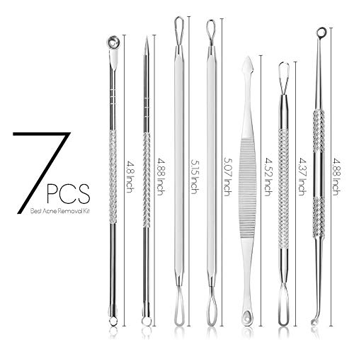 7 PCS Rimozione Punti Neri Acciaio Blackhead Remover Kit Rimozione di Comedone Punti Neri Strumenti Togli i Punti Bianchi e le Macchie Acne dal Viso