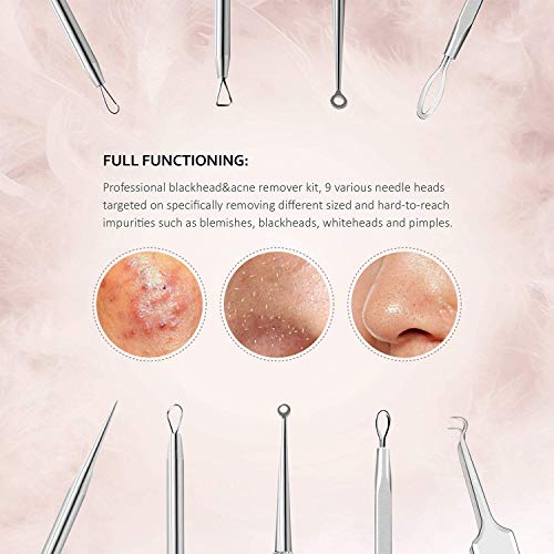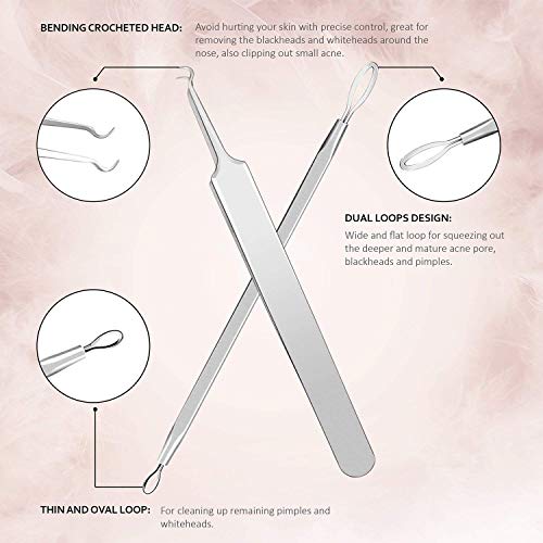 Rimozione Punti Neri Naso Leva Comedoni IZUKU [GARANZIE A VITA] Blackhead Remover Kit Acciaio da 6 Strumenti Professionali con Due Estremità,togli i Punti Bianchi e le Macchie Acne dal Viso