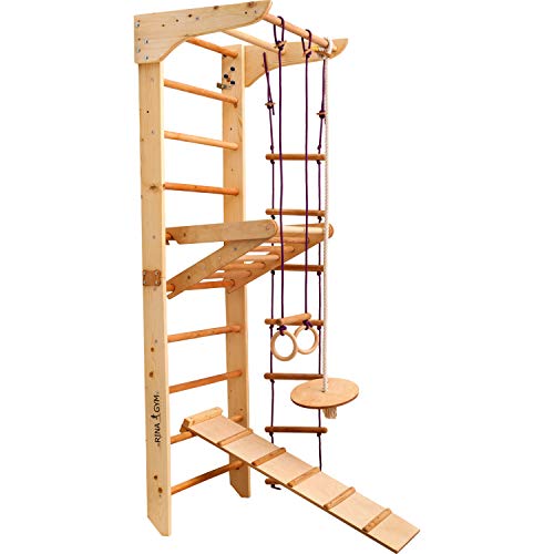 RINAGYM Parco Giochi per Bambini - Set Palestra da Interno ed Esterno per Gioco, Ginnastica ed Esercizi - Asta, Anelli, Corda per Arrampicata, Monkey Bar, Trave, Spalliera, Altalena, Scivolo - 2+ Anni