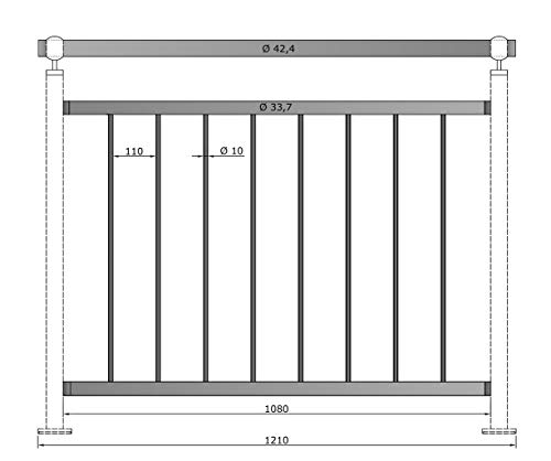 Contenuto della confezione: ringhiera per ringhiera: lunghezza 1210 mm, altezza ringhiera: 1000 mm