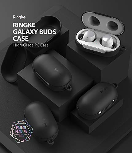 Ringke Cover Compatibel met Galaxy Buds Plus (2020) e Galaxy Buds (2019), Accessorio Custodia Rigida PC con Moschettone Case - Black Nero