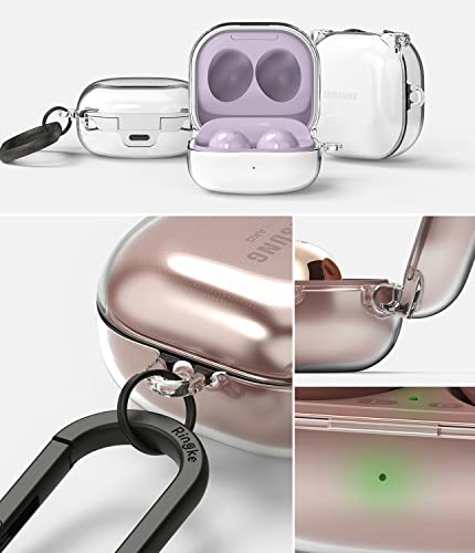 Ringke Hinge Compatibile con Cover Samsung Galaxy Buds 2 Pro (2022) / 2 / Pro/Live, Custodia PC Rigida con Moschettone - Clear Trasparente