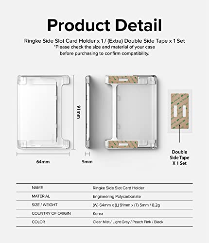 Ringke Side Slot Card Holder (1 Pezzi) Adesivo Sottile Rigida PC Porta ID e Carte di Credito per Cellulare - Clear Mist