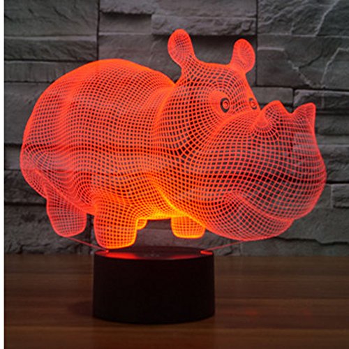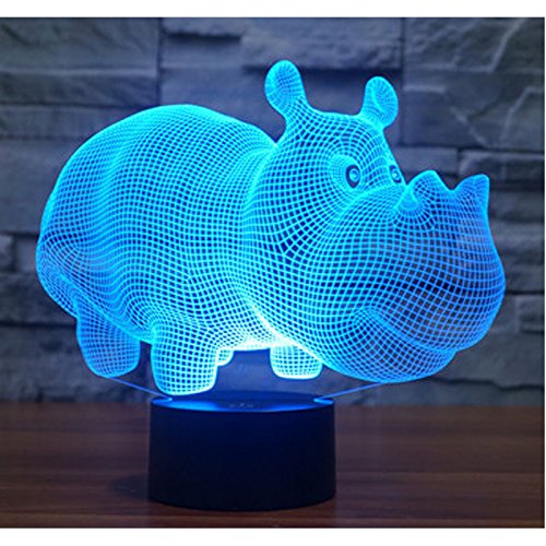 3d rinoceronte Ippopotamo luce notturna lampada luce notturna ottico Illusion 7 cambia colore Touch Switch tavolo scrivania decorazione lampade regalo di natale con acrilico