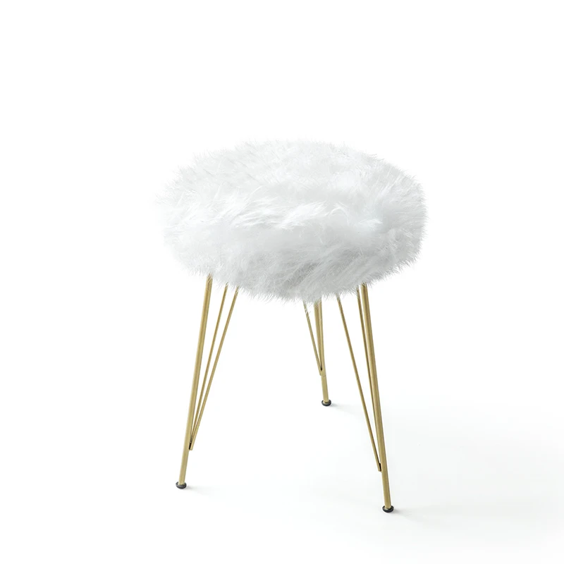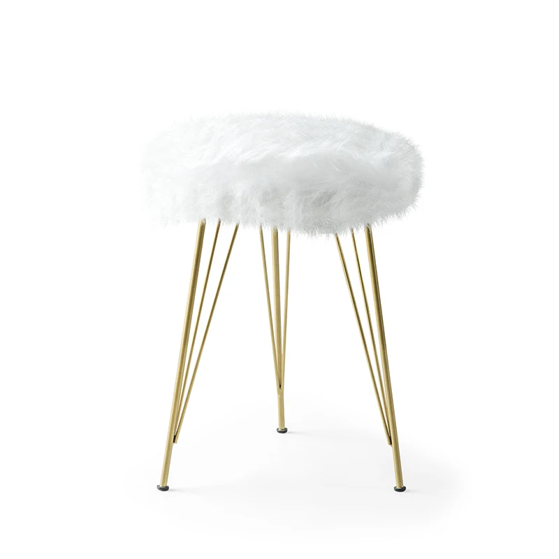 Rioba White Stool Ottoman Nordic Pouffe Dressing Stool Gold Colored Legs
