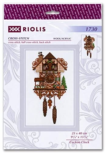 RIOLIS Orologio a cucù Ricamo a Punto Croce, Cotone, Multicolore, 25 x 40 x 0.1 cm