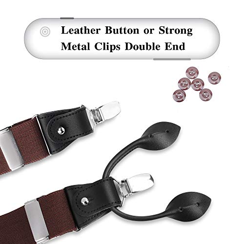 Dimensioni: 3,4 cm di larghezza x 100 cm di lunghezza. Si adatta a 124,5 cm di lunghezza. Clip in metallo facilmente regolabile, allunga il corpo comodamente e destinato a adattarsi a qualsiasi uomo di taglia. Stile classico con retro a Y. Può essere indossato con bottoni o clip in metallo color argento. La confezione include 6 bottoni.