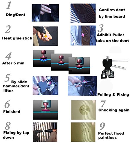 HIYI PDR - Kit di riparazione ammaccature senza vernice, 26 pezzi, con ventosa e estrattore a T