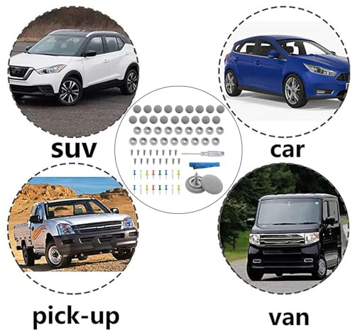 【Il Pacchetto Include】La confezione include 65pcs di bottoni per riparazione cielo auto, 65 spilli colorati, 1 metro a nastro e 1 cacciavite. La quantità è sufficiente per soddisfare le vostre esigenze quotidiane.