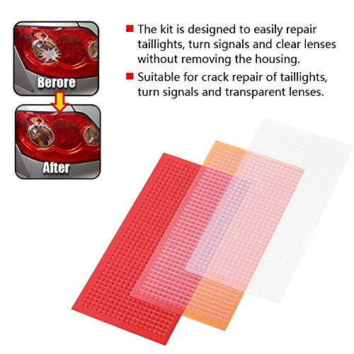 [Abbinamento perfetto]il design del kit di riparazione del fanale posteriore utilizza un motivo a griglia preformato che si abbina perfettamente alla lente originale. Il kit di riparazione multi-pezzo è disponibile in tre colori: rosso, ambra e trasparente.adatto per kit fanale posteriore t maxadatto per 3m auto lens