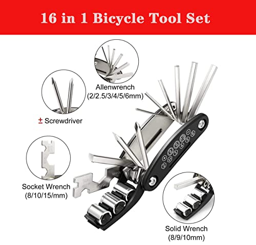 Kit Riparazione per Bici, 16 in 1 Multi Functional Bike Bicycle Mechanic Repair Set,Kit Bicicletta Riparazione, Borsa Sottosella, Black