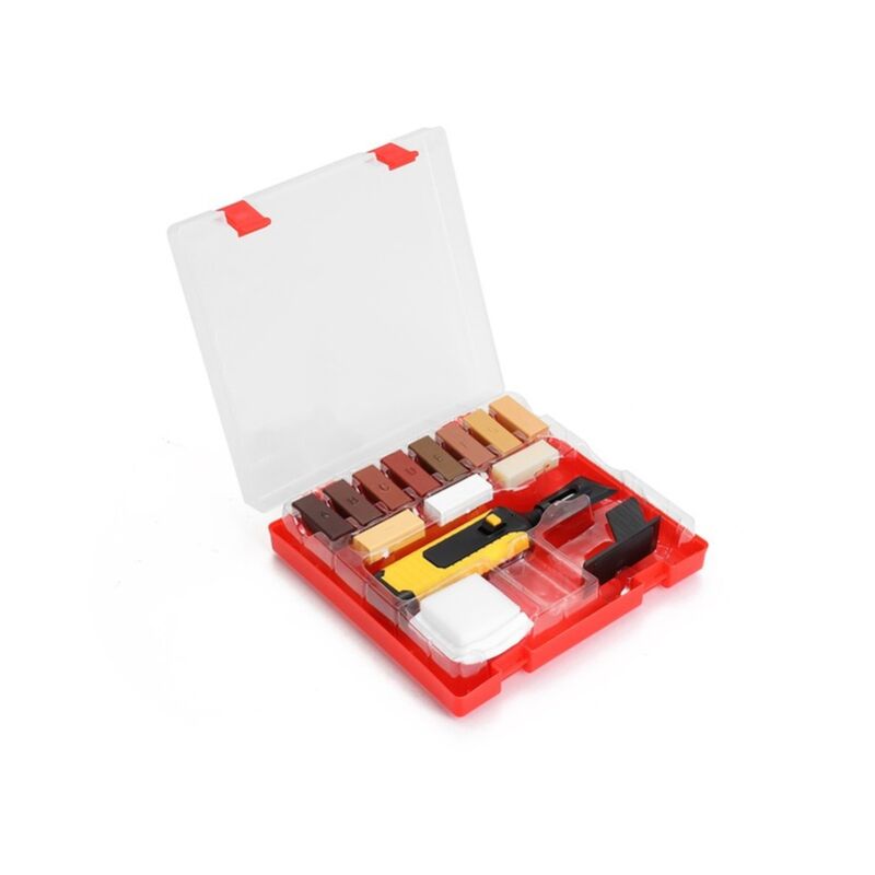 Kit di riparazione per pavimenti in laminato sistema di cera antigraffio per mobili strumento di riparazione Kit di attrezzi manuali per la riparazione di graffi per mobili in legno Realizzato in materiale di alta qualità, pratico, facile da usare e da usare, un'ampia gamma di applicazioni, ha una lunga durata. Caratteristiche: Consigliato per riparare graffi minori a pavimenti in laminato, piani di lavoro, mobili, armadi, legname, telai per finestre, ecc. Perfetto per il devoto fai-da-te e l'utente più avanzato. Il kit include una gamma versatile di materiali che possono essere utilizzati per riparare pavimenti e superfici in laminato nei colori più popolari. Può anche essere utilizzato per riparare cucine e altri piani di lavoro in laminato decorativo e anche arredi in legno. Il graffio o il danno leggero possono essere riparato senza sforzo. Bastoncini di riempimento facili da usare. Cambia semplicemente il colore delle tue tavole danneggiate mescolando gli 11 blocchi di cera.