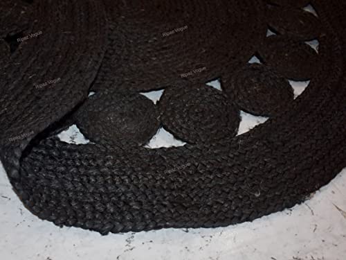 Ripaz - Tappeto in juta intrecciato a mano, rotondo, 180 x 180 cm, colore: Nero