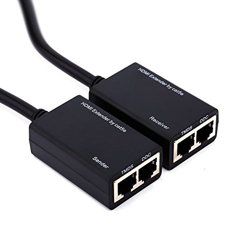 Ripetitore di Estensione HDMI 30M di CAT5e, mittente + Ricevitore, TMDS DDC su RJ45 CAT5e CAT6 Adattatore di Estensione Balun Ethernet LAN Balun Fino a 1080P Supporta 3D, Nero