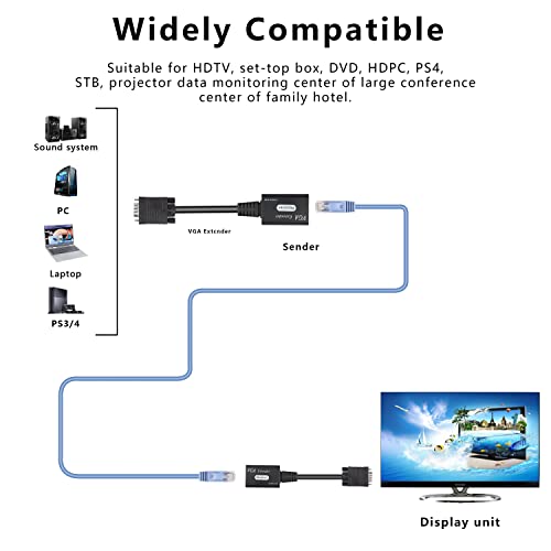 Ripetitore di segnale VGA su Cat5e/6, VGA maschio a RJ45 Ethernet LAN, Ripetitore per HDTV HDPC PS4 STB 1080P fino a 60 m (1 trasmettitore + 1 ricevitore)